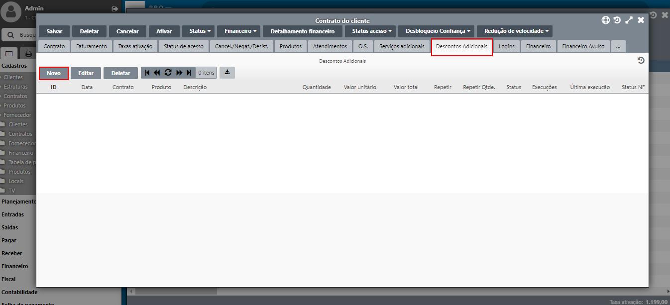 Direcione-se à aba Descontos adicionais e clique no botão Novo. Conforme imagem: