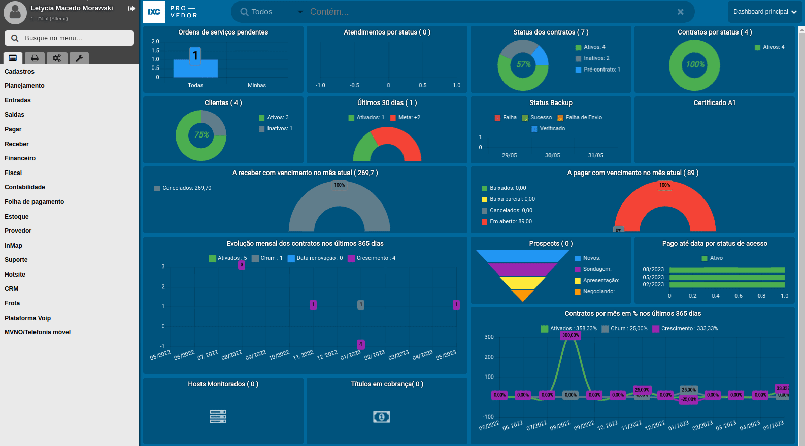 - Sistema > Cadastros > Contratos.